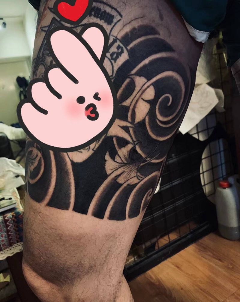 • T网红王老大花腿龙纹身图片_腿部新传统纹身图案