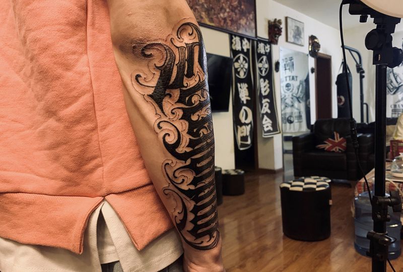 当前位置: 首页 >云南省昆明市纹身店-禅刺青艺术工作室纹身图案>花体设计纹身图片_花体字纹身图案