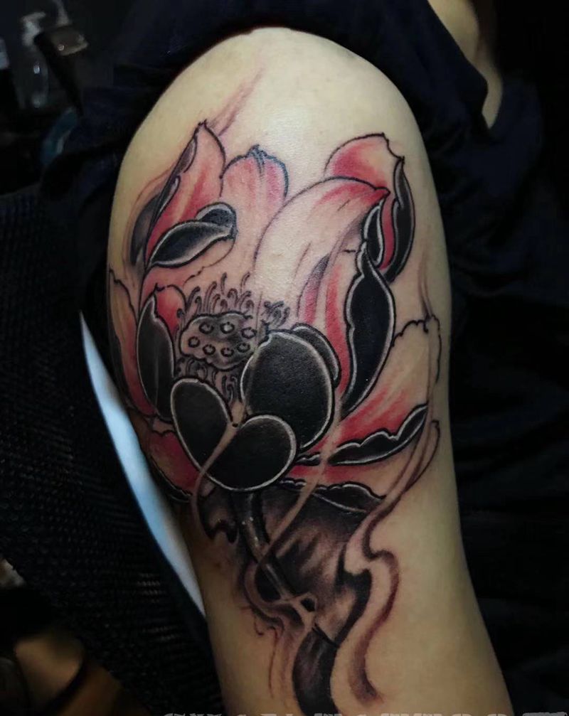 当前位置: 首页 >云南省昆明市纹身店-禅刺青艺术工作室纹身图案>莲花纹身图片_新传统纹身图案