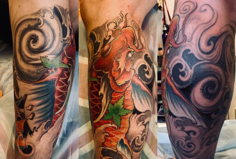 • T网红王老大花腿龙纹身图片_腿部新传统纹身图案