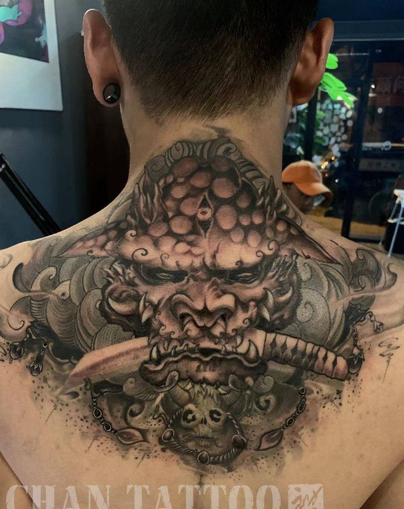 黑灰满背纹身图案