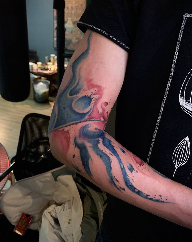 当前位置: 首页 >云南省昆明市纹身店-禅刺青艺术工作室纹身图案>水墨纹身图片_手臂水墨纹身图案