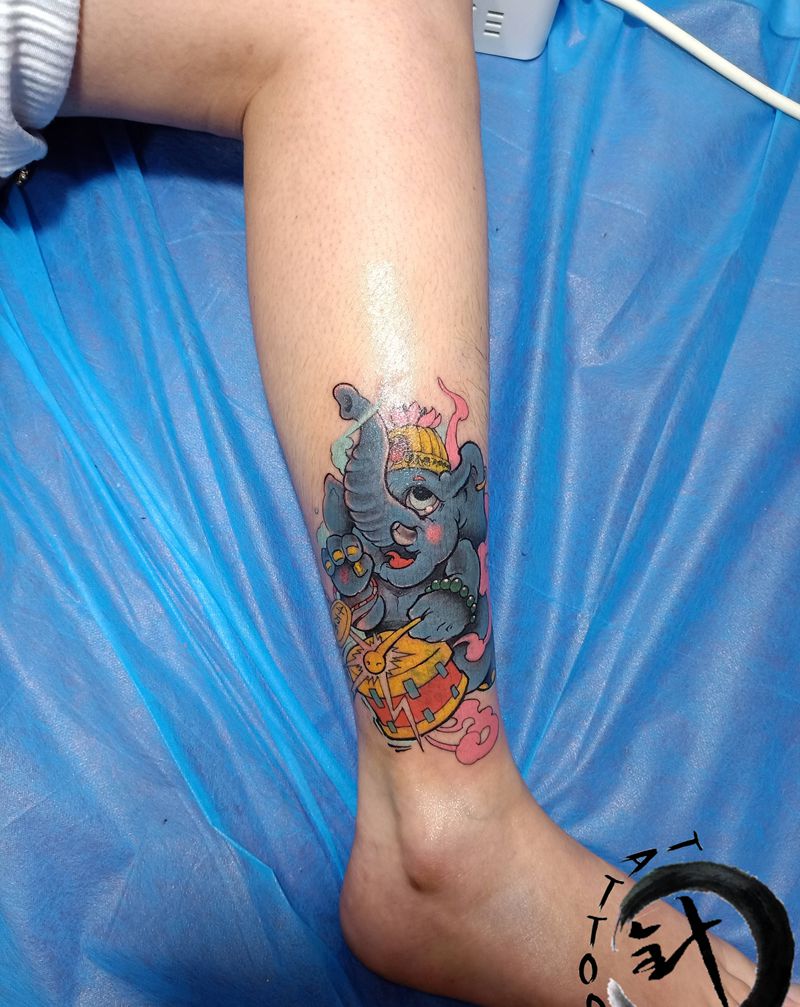 当前位置: 首页 >云南省昆明市纹身店-tattoo针尖下的艺术纹身图案>遮盖纹身图片_腿部New School象纹身图案