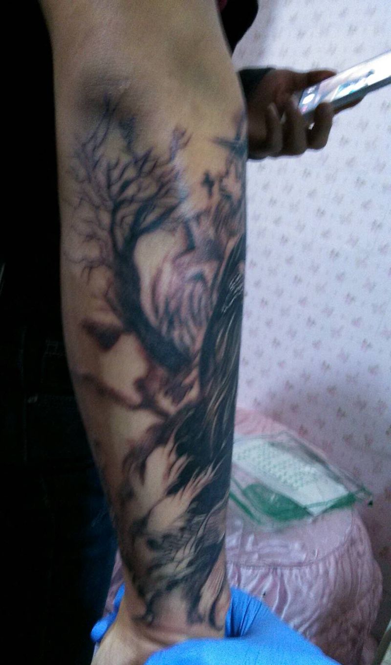 当前位置: 首页 >云南省昆明市纹身店-tattoo针尖下的艺术纹身图案>死神纹身图片_手臂欧美鬼神原创小白刺青塔图 针成品纹身图案