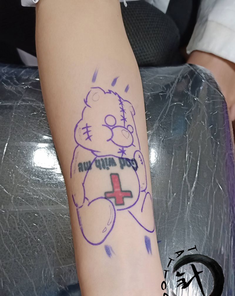遮盖纹身图片_手部遮盖小熊纹身图案