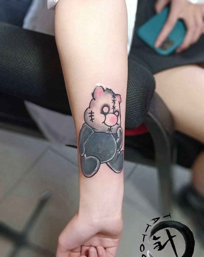 遮盖纹身图片_手部遮盖小熊纹身图案