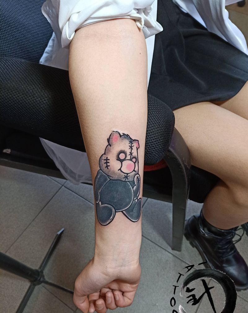 遮盖纹身图片_手部遮盖小熊纹身图案