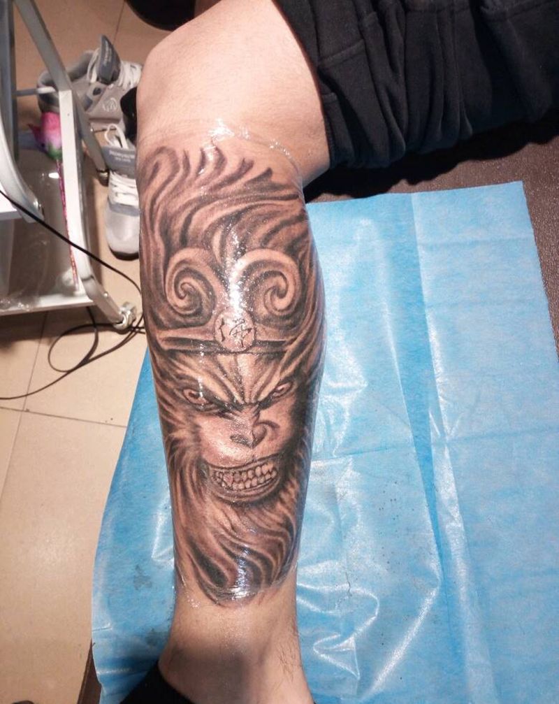 当前位置: 首页 >云南省昆明市纹身店-tattoo针尖下的艺术纹身图案>大圣纹身图片_腿部传统原创小白刺青塔图 针成品纹身图案