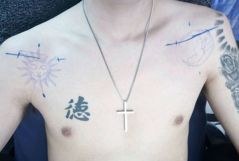 当前位置: 首页 >云南省昆明市纹身店-tattoo针尖下的艺术纹身图案>肩~太阳、月亮纹身图片_肩部欧美清新原创小白刺青塔图 针成品纹身图案