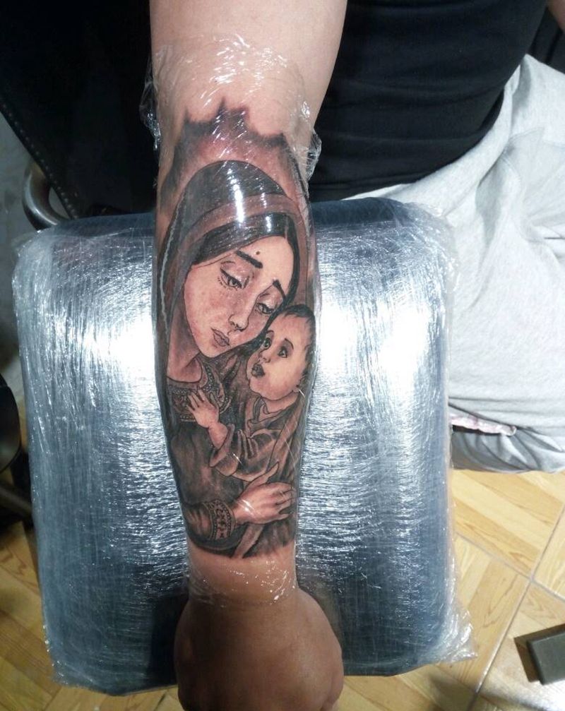 当前位置: 首页 >云南省昆明市纹身店-tattoo针尖下的艺术纹身图案>圣母纹身图片_手臂肖像人物原创小白刺青塔图 针成品纹身图案