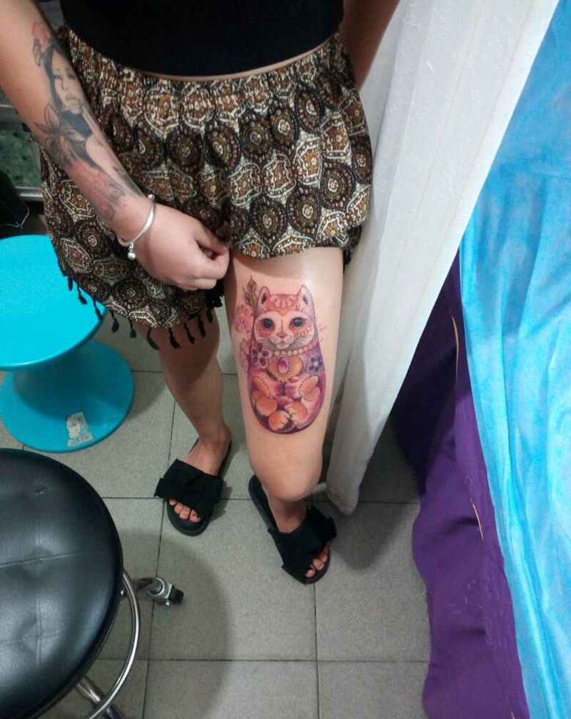 当前位置: 首页 >云南省昆明市纹身店-tattoo针尖下的艺术纹身图案>小喵咪纹身图片_腿部欧美动物原创小白刺青塔图 针成品纹身图案