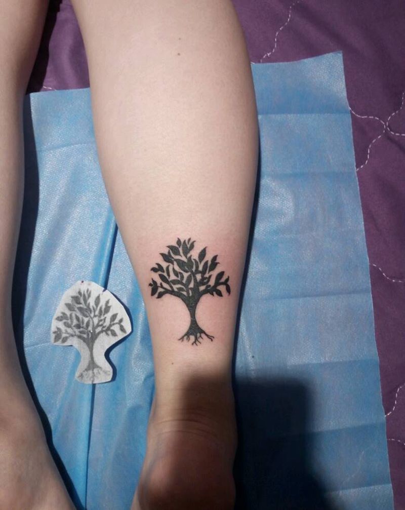 树纹身图片_腿部清新图腾原创小白刺青塔图 针成品纹身图案
