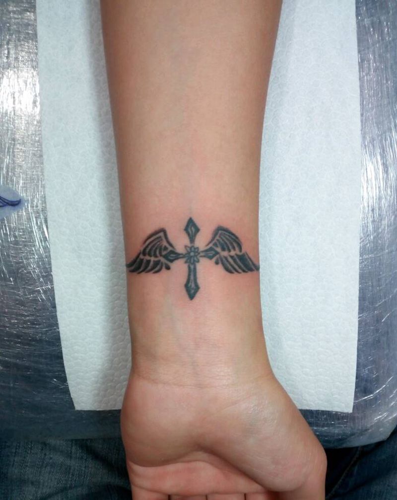 当前位置: 首页 >云南省昆明市纹身店-tattoo针尖下的艺术纹身图案>十字架翅膀纹身图片_手臂清新静物原创小白刺青塔图~针成品纹身图案