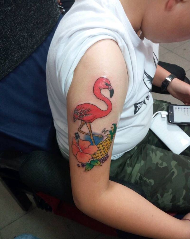 当前位置: 首页 >云南省昆明市纹身店-tattoo针尖下的艺术纹身图案>火烈鸟纹身图片_手臂传统动物植物原创小白刺青塔图~针成品纹身图案