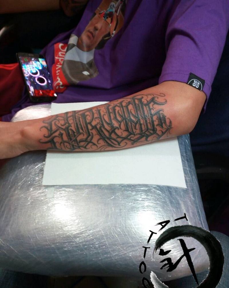 当前位置: 首页 >云南省昆明市纹身店-tattoo针尖下的艺术纹身图案>花体字纹身图片_手臂欧美字符原创小白刺青塔图~针成品纹身图案