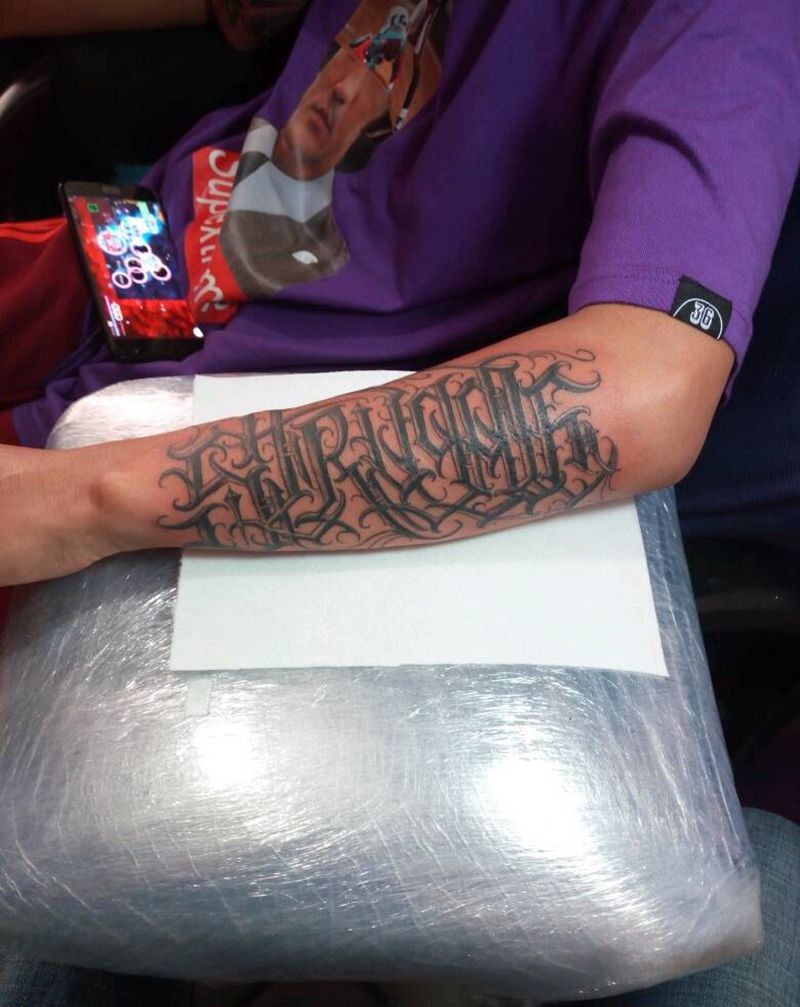 当前位置: 首页 >云南省昆明市纹身店-tattoo针尖下的艺术纹身图案>花体字纹身图片_手臂欧美字符原创小白刺青塔图~针成品纹身图案
