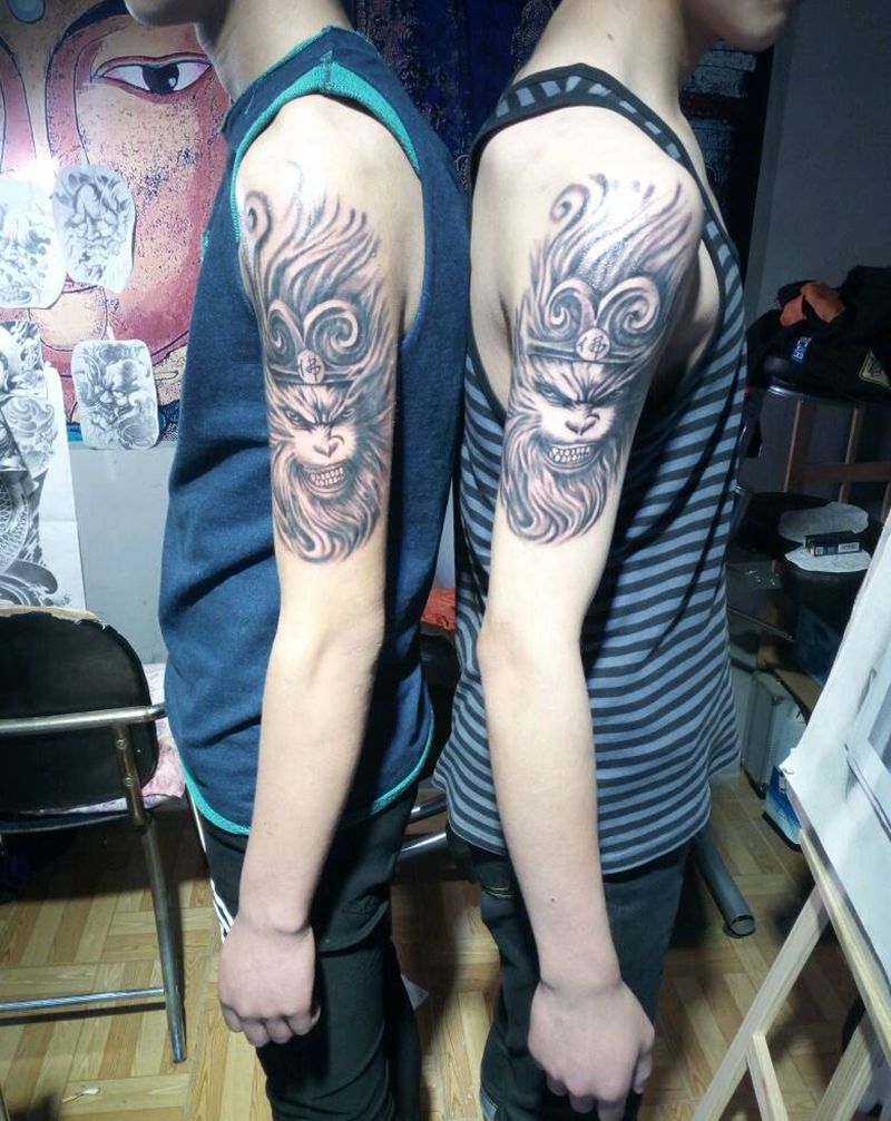 当前位置: 首页 >云南省昆明市纹身店-tattoo针尖下的艺术纹身图案>猴子纹身图片_手臂传统人物小白刺青塔图~针成品纹身图案