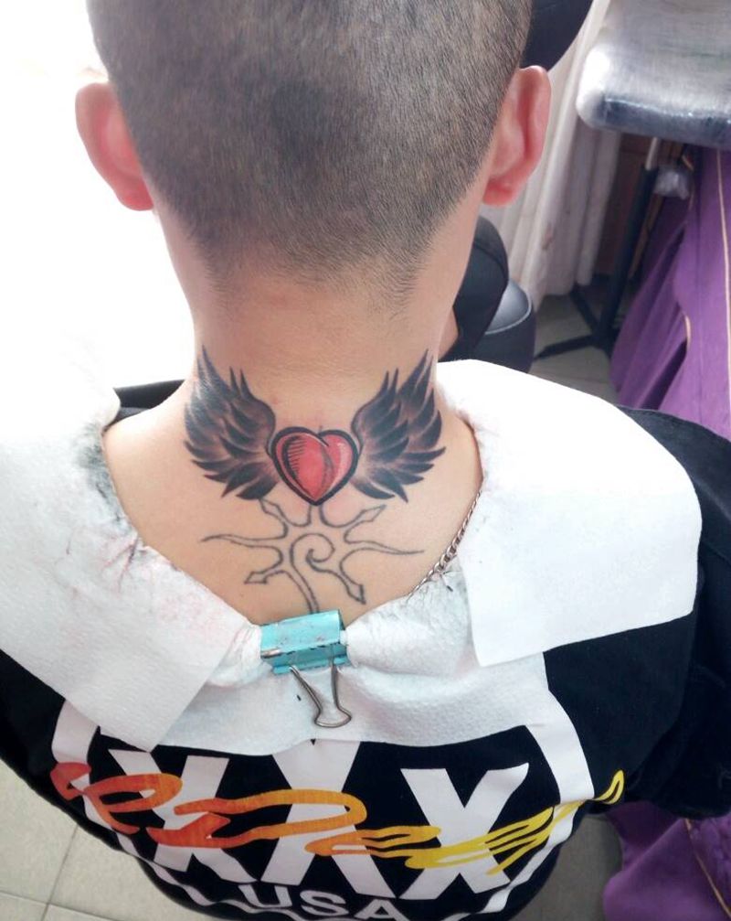 爱心翅膀纹身图片_颈部传统清新静物原创小白刺青塔图~针成品纹身图案