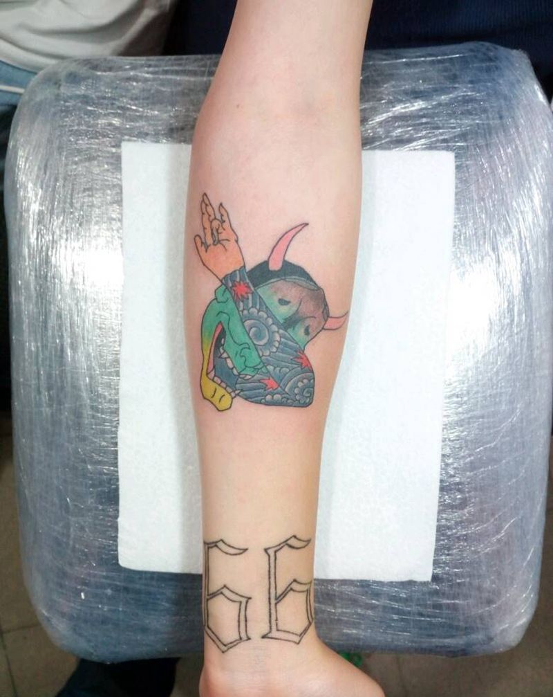 般若纹身图片_手臂传统清新人物原创小白刺青塔图~针成品纹身图案