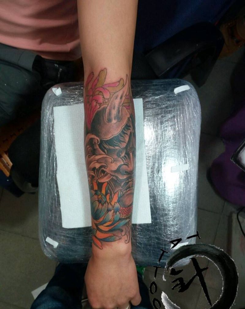 当前位置: 首页 >云南省昆明市纹身店-tattoo针尖下的艺术纹身图案>般若纹身图片_手臂传统鬼神原创小白刺青塔图~针成品纹身图案