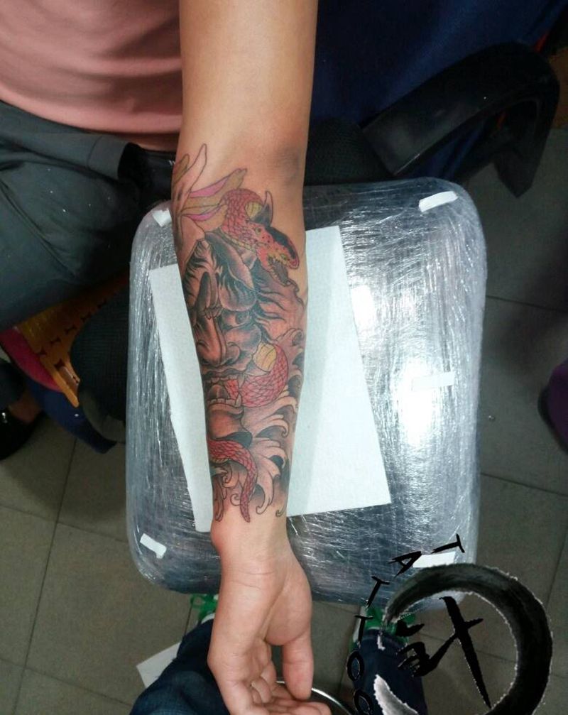 当前位置: 首页 >云南省昆明市纹身店-tattoo针尖下的艺术纹身图案>般若纹身图片_手臂传统鬼神原创小白刺青塔图~针成品纹身图案