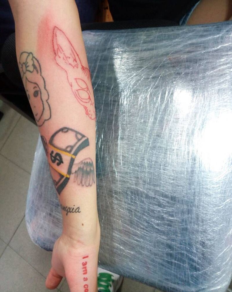当前位置: 首页 >云南省昆明市纹身店-tattoo针尖下的艺术纹身图案>钱纹身图片_手臂欧美静物原创小白刺青塔图~针成品纹身图案