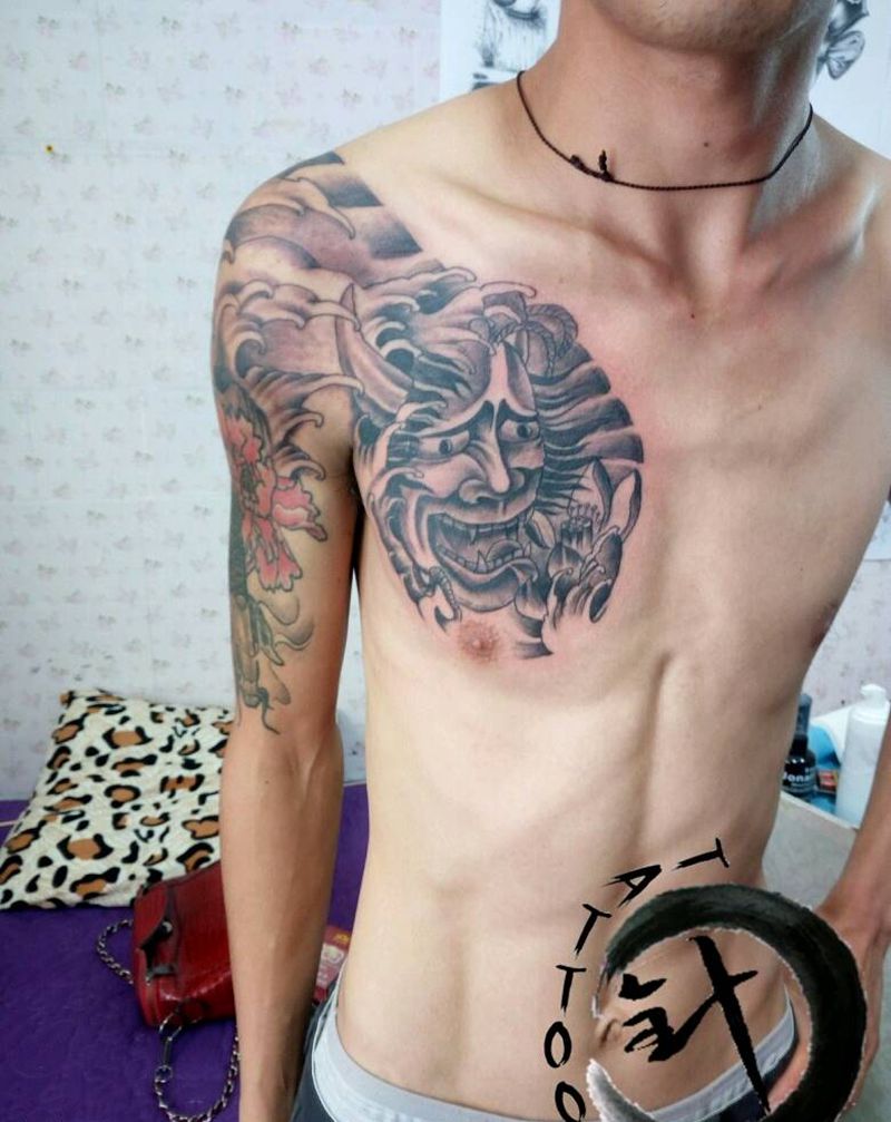 般若添加纹身图片_胸部手臂传统鬼神原创小白刺青塔图~针成品纹身图案