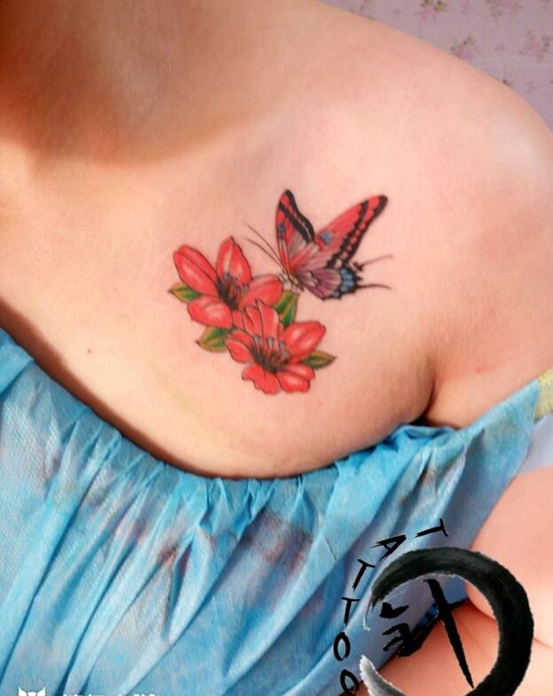• 女性大花胸纹身_43张霸气漂亮的女性大花胸纹身图案作品