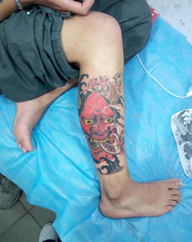 般若纹身图片_腿部传统人物原创小白刺青塔图~针成品纹身图案