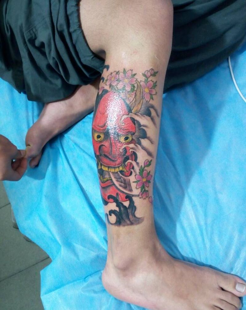 般若纹身图片_腿部传统人物原创小白刺青塔图~针成品纹身图案