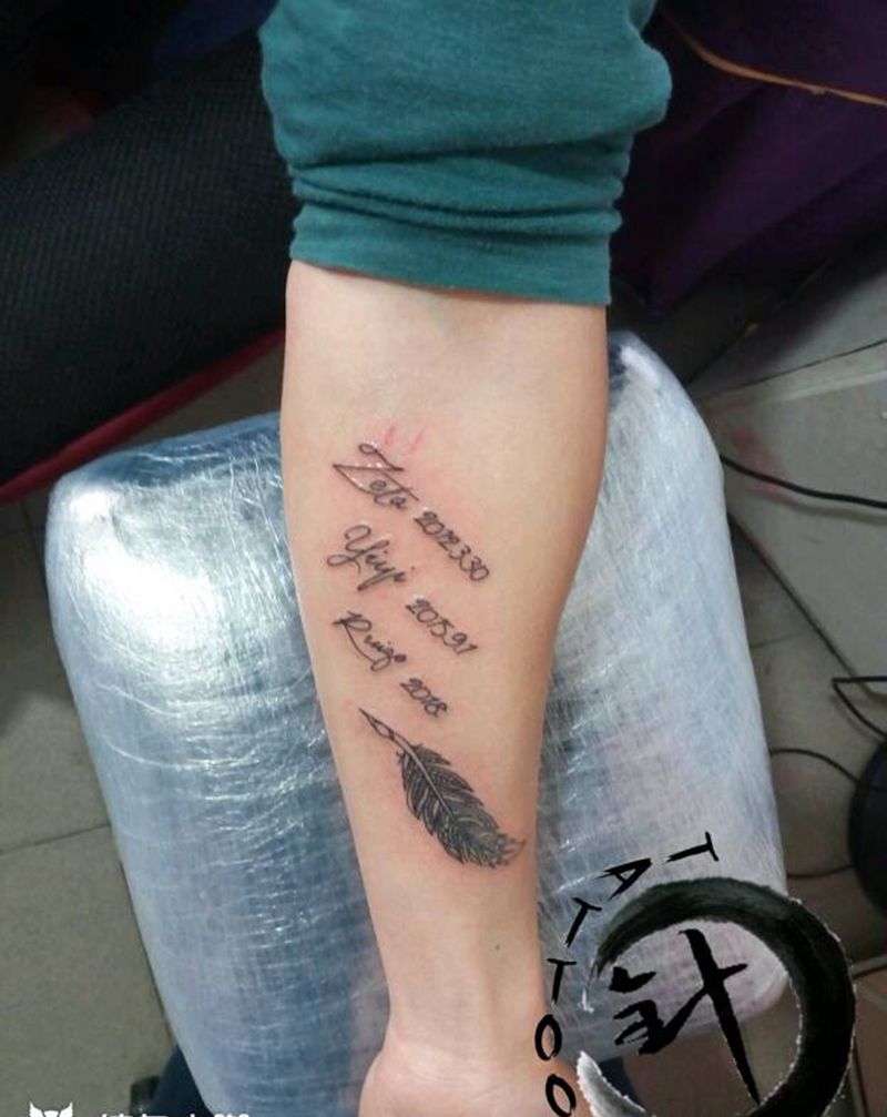 • T家庭图,一家四口生日纪念!纹身图片_手臂纹身图案