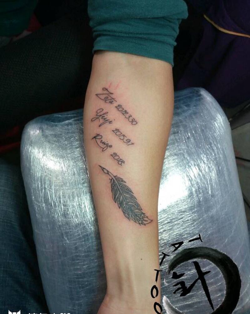 • T家庭图,一家四口生日纪念!纹身图片_手臂纹身图案