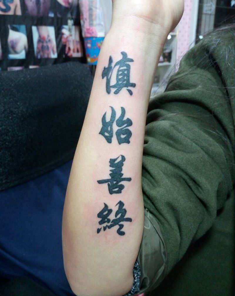 当前位置: 首页 >云南省昆明市纹身店-tattoo针尖下的艺术纹身图案>慎始善终纹身图片_手臂传统字符原创小白刺青塔图~针成品纹身图案