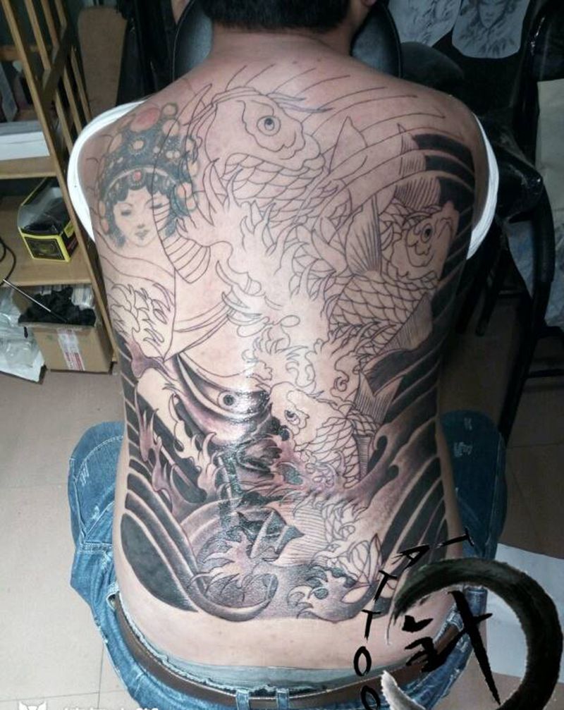 • T云龙九郎纹身图片_背部老传统云龙九郎纹身图案