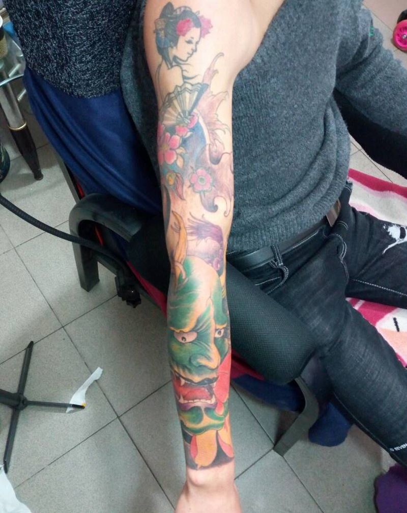 般若纹身图片_手臂传统人物原创小白刺青塔图~针成品纹身图案