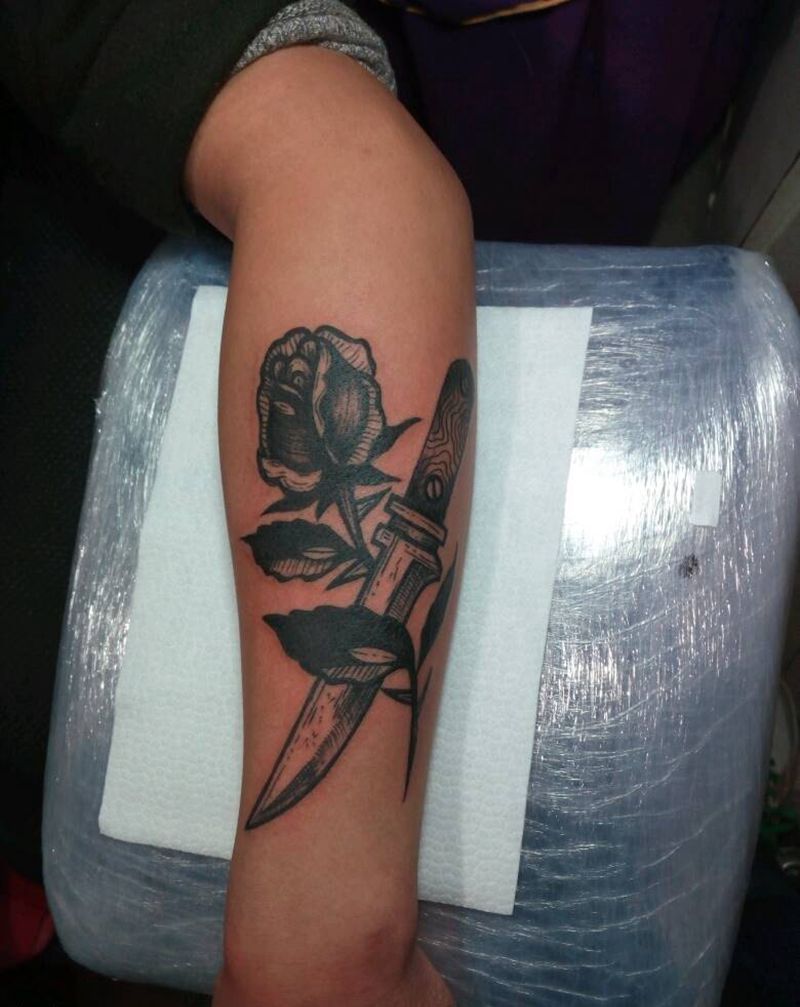 当前位置: 首页 >云南省昆明市纹身店-tattoo针尖下的艺术纹身图案>玫瑰||匕首纹身图片_手臂欧美植物静物小白刺青塔图~针成品纹身图案