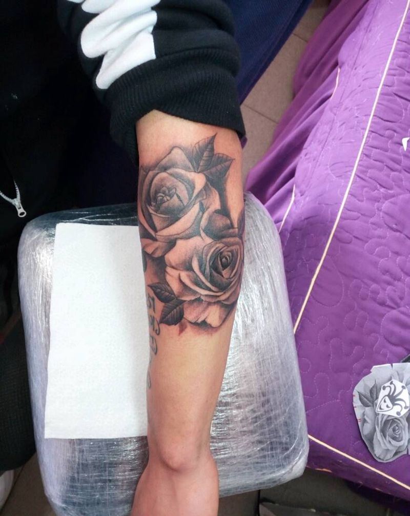 当前位置: 首页 >云南省昆明市纹身店-tattoo针尖下的艺术纹身图案>玫瑰纹身图片_手臂欧美植物原创小白刺青塔图~针成品纹身图案
