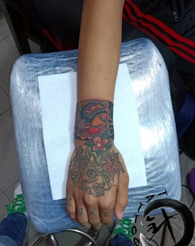 • 手背潮流时尚的玫瑰花眼睛纹身图案