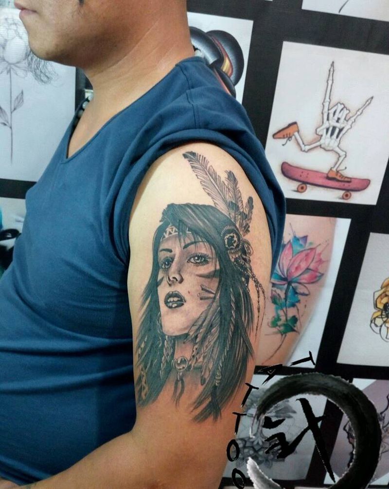 当前位置: 首页 >云南省昆明市纹身店-tattoo针尖下的艺术纹身图案>#印第安女#纹身图片_手臂欧美人物图腾原创小小白刺塔图*针成品纹身图案