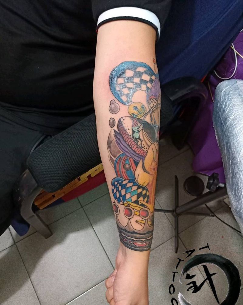 当前位置: 首页 >云南省昆明市纹身店-tattoo针尖下的艺术纹身图案>小丑‖未完纹身图片_手臂欧美人物原创小小白刺塔图~针成品纹身图案