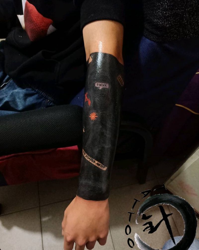 当前位置: 首页 >云南省昆明市纹身店-tattoo针尖下的艺术纹身图案>刷黑 遮盖纹身图片