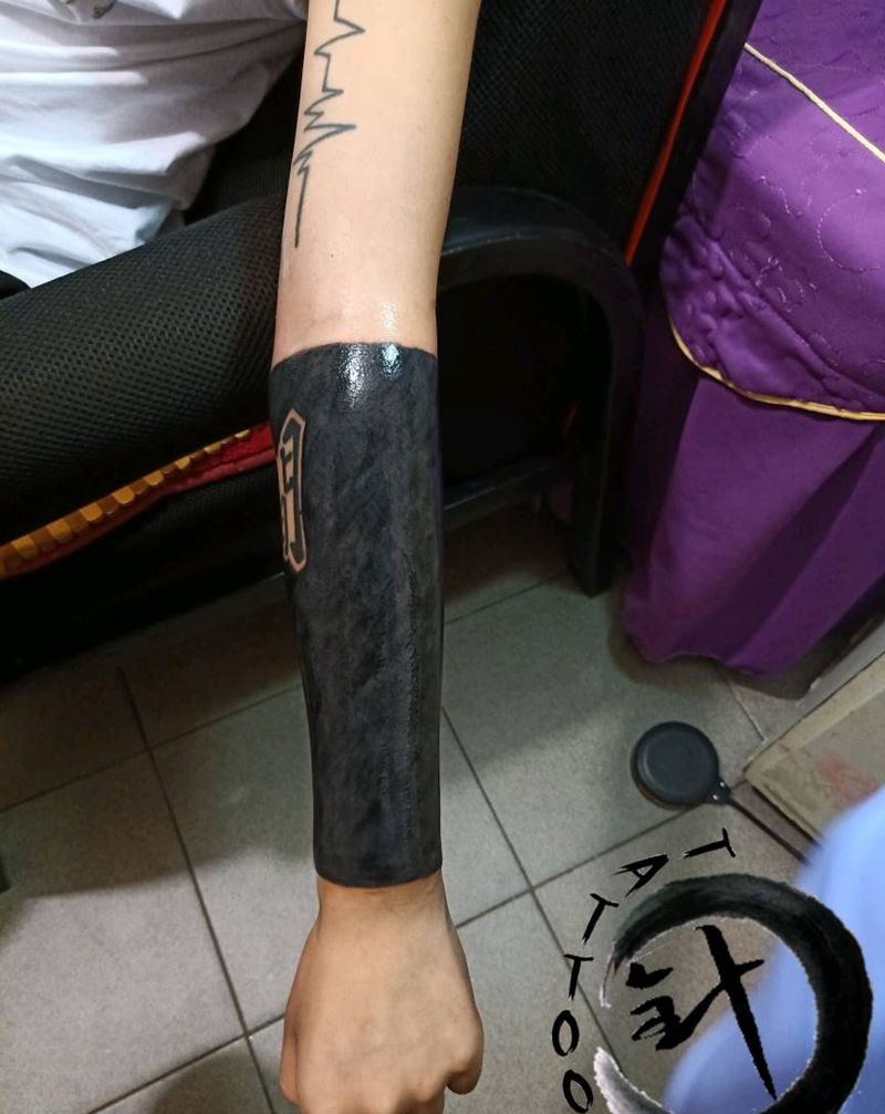 黑臂纹身图片_手臂图腾水墨黑臂纹身图案