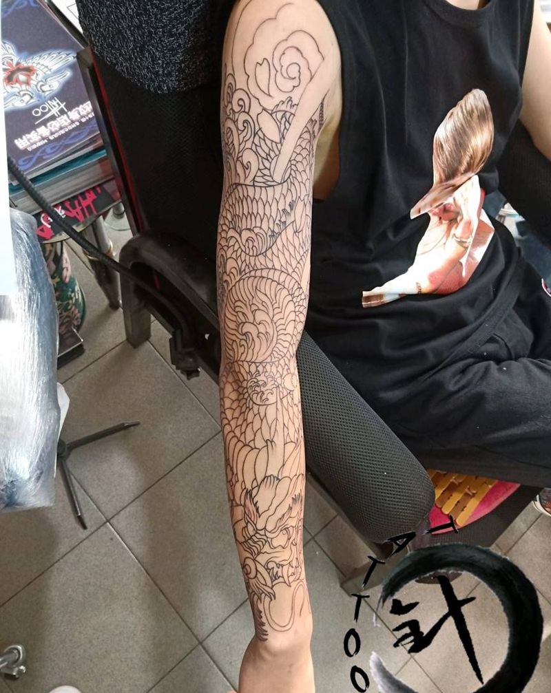 当前位置: 首页 >云南省昆明市纹身店-tattoo针尖下的艺术纹身图案>青龙臂线条 待续纹身图片_手臂老传统新传统花臂纹身图案