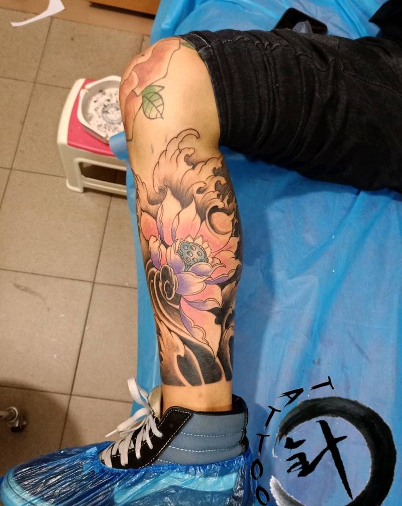 当前位置: 首页 >云南省昆明市纹身店-tattoo针尖下的艺术纹身图案>莲花纹身图片_腿部老传统莲花纹身图案
