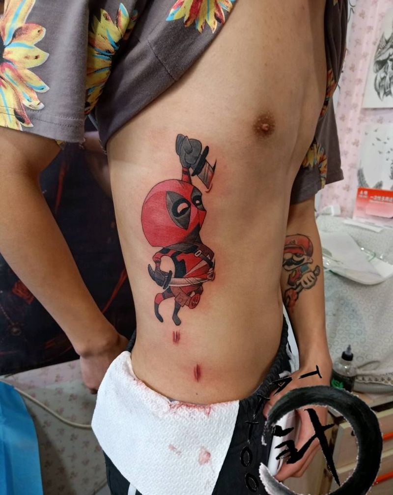 当前位置: 首页 >云南省昆明市纹身店-tattoo针尖下的艺术纹身图案>漫威/死侍纹身图片_腰部New School死侍漫威纹身图案