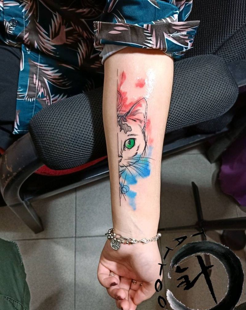 当前位置: 首页 >云南省昆明市纹身店-tattoo针尖下的艺术纹身图案>水彩猫纹身图片_手臂水彩猫水彩纹身图案