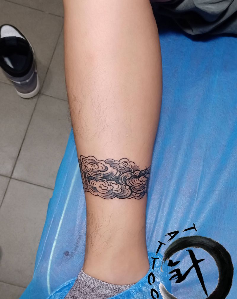 脚环遮盖纹身图片_腿部遮盖云帆船纹身图案