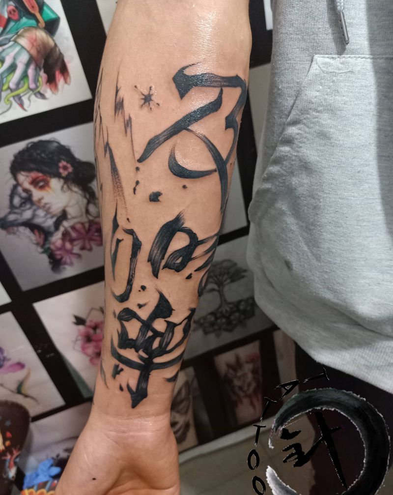 当前位置: 首页 >云南省昆明市纹身店-tattoo针尖下的艺术纹身图案>及时行乐纹身图片_手臂水墨及时行乐水墨纹身图案