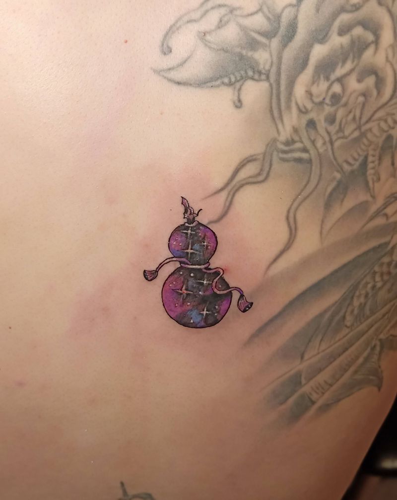 当前位置: 首页 >云南省昆明市纹身店-tattoo针尖下的艺术纹身图案>星空葫芦 遮盖纹身图片_背部水彩星空葫芦纹身图案