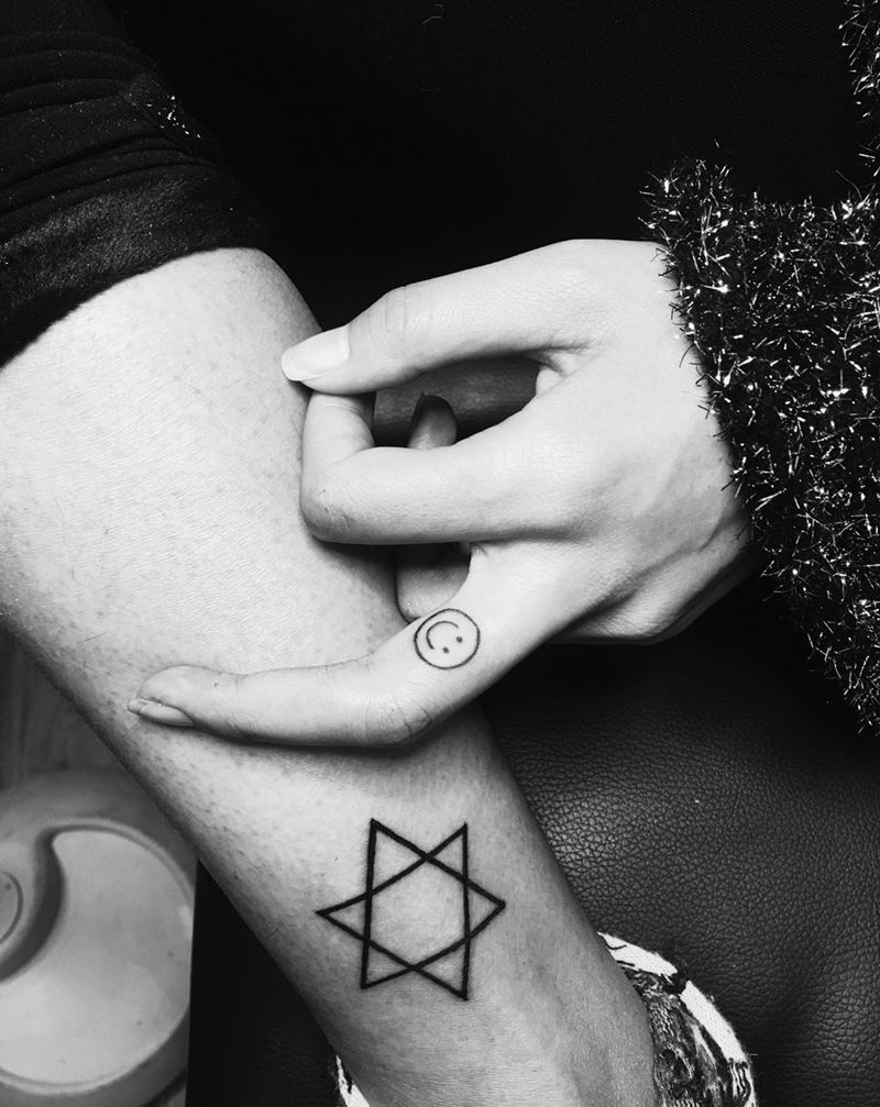 六芒星和笑脸纹身图片_成品手部脚部腿部纹身图案